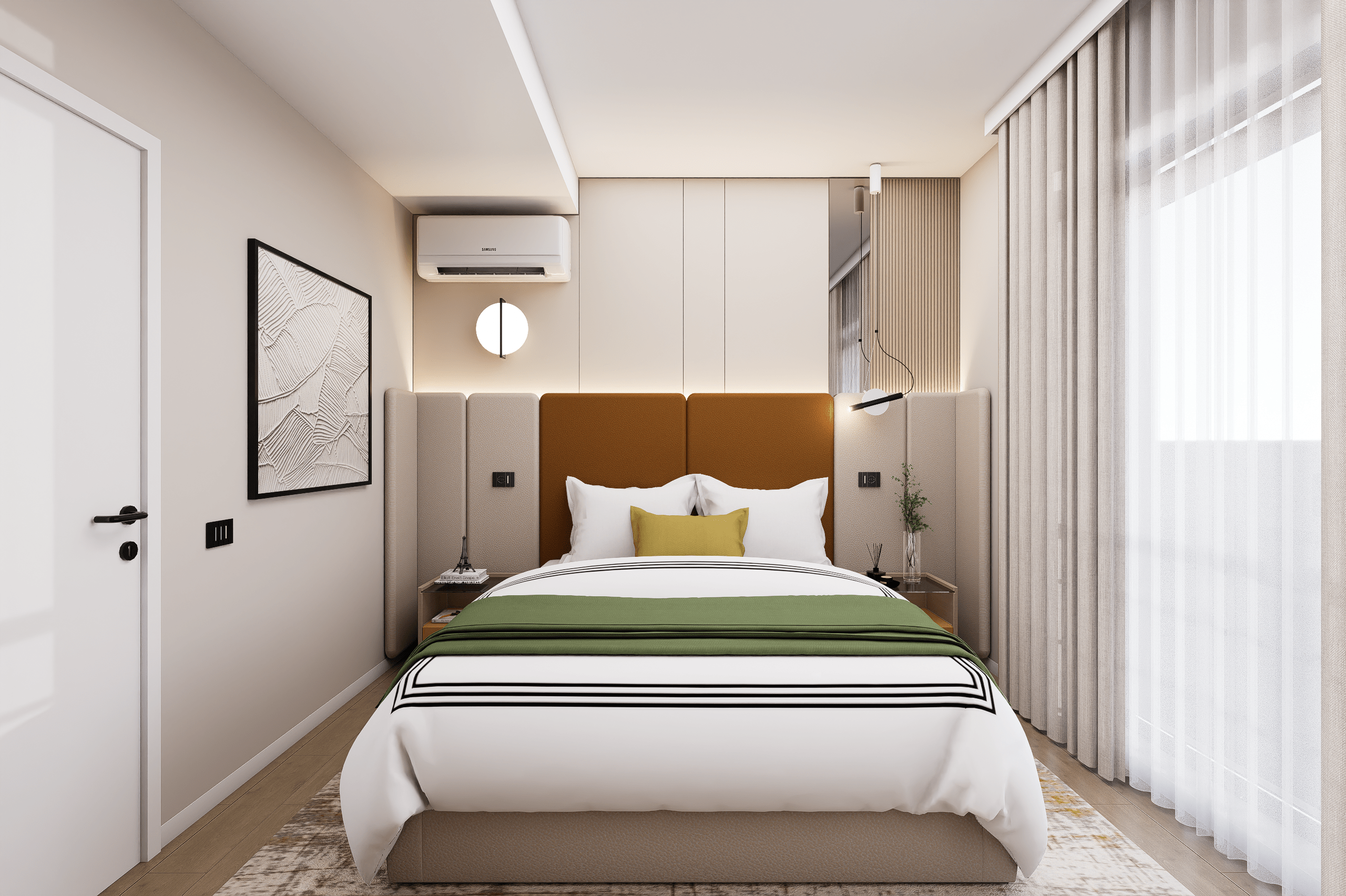 Paleta cromatică este dominată de nuanțe bej, crem și lemn natural, elemente care aduc unitate vizuală și un sentiment de relaxare.