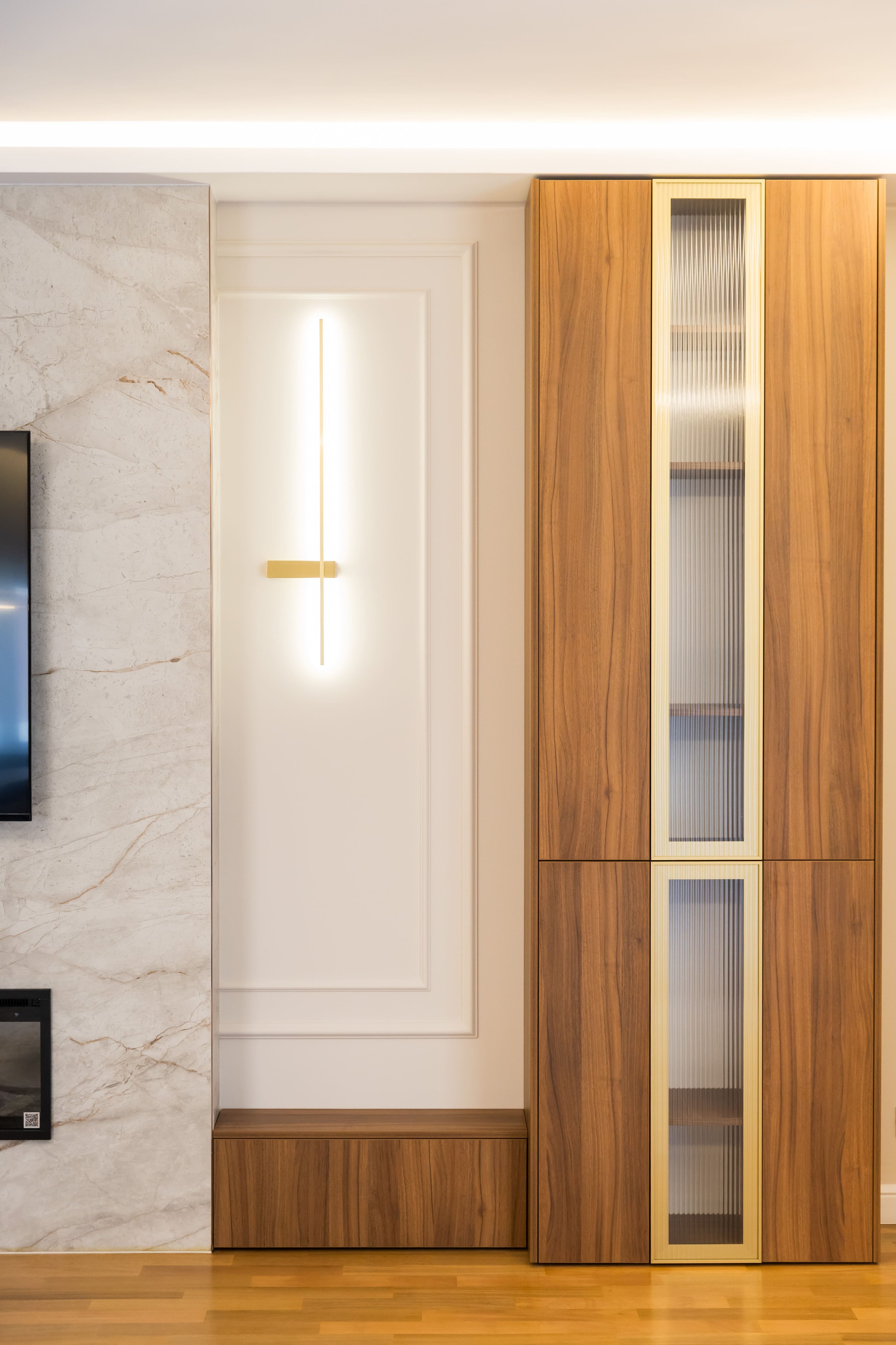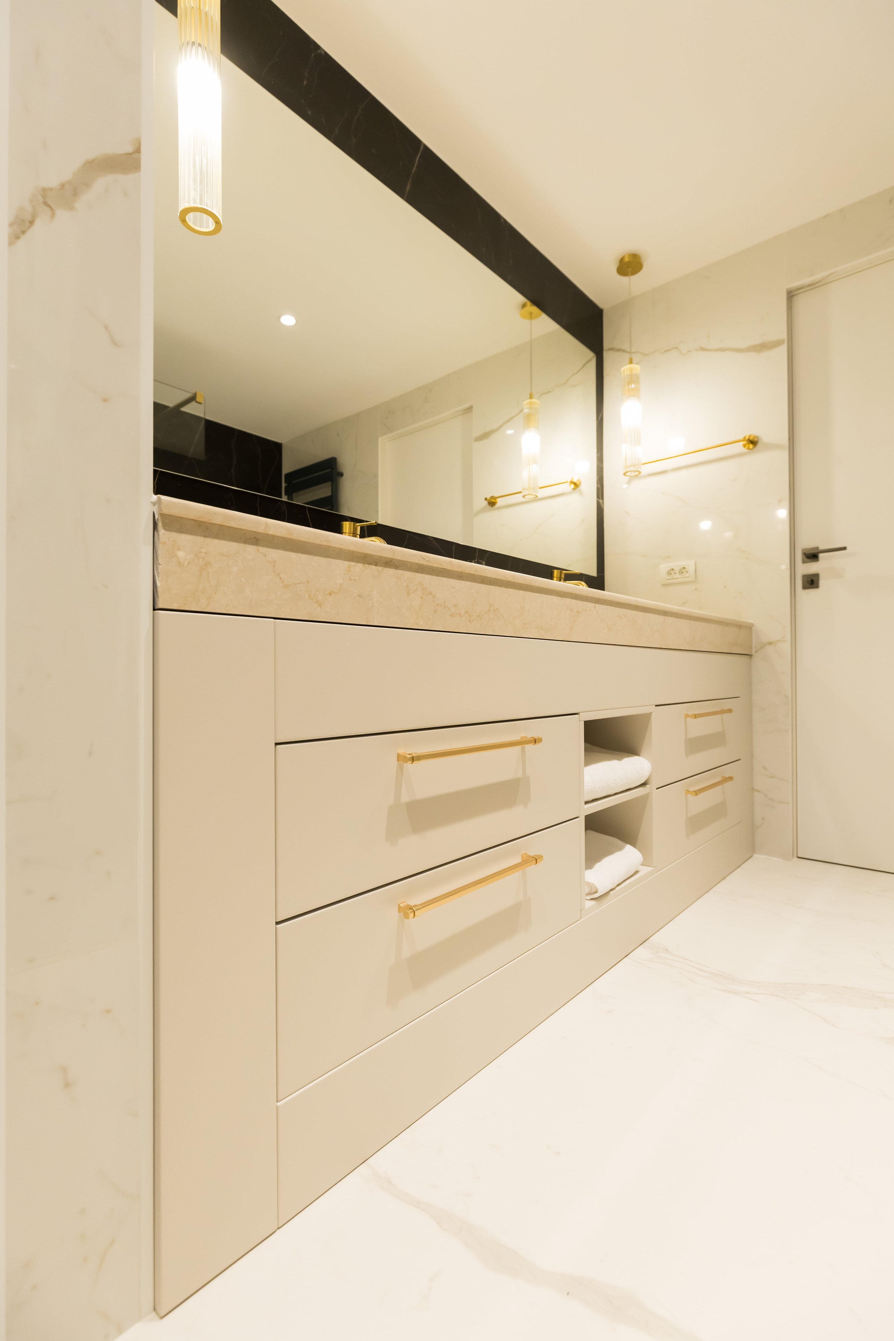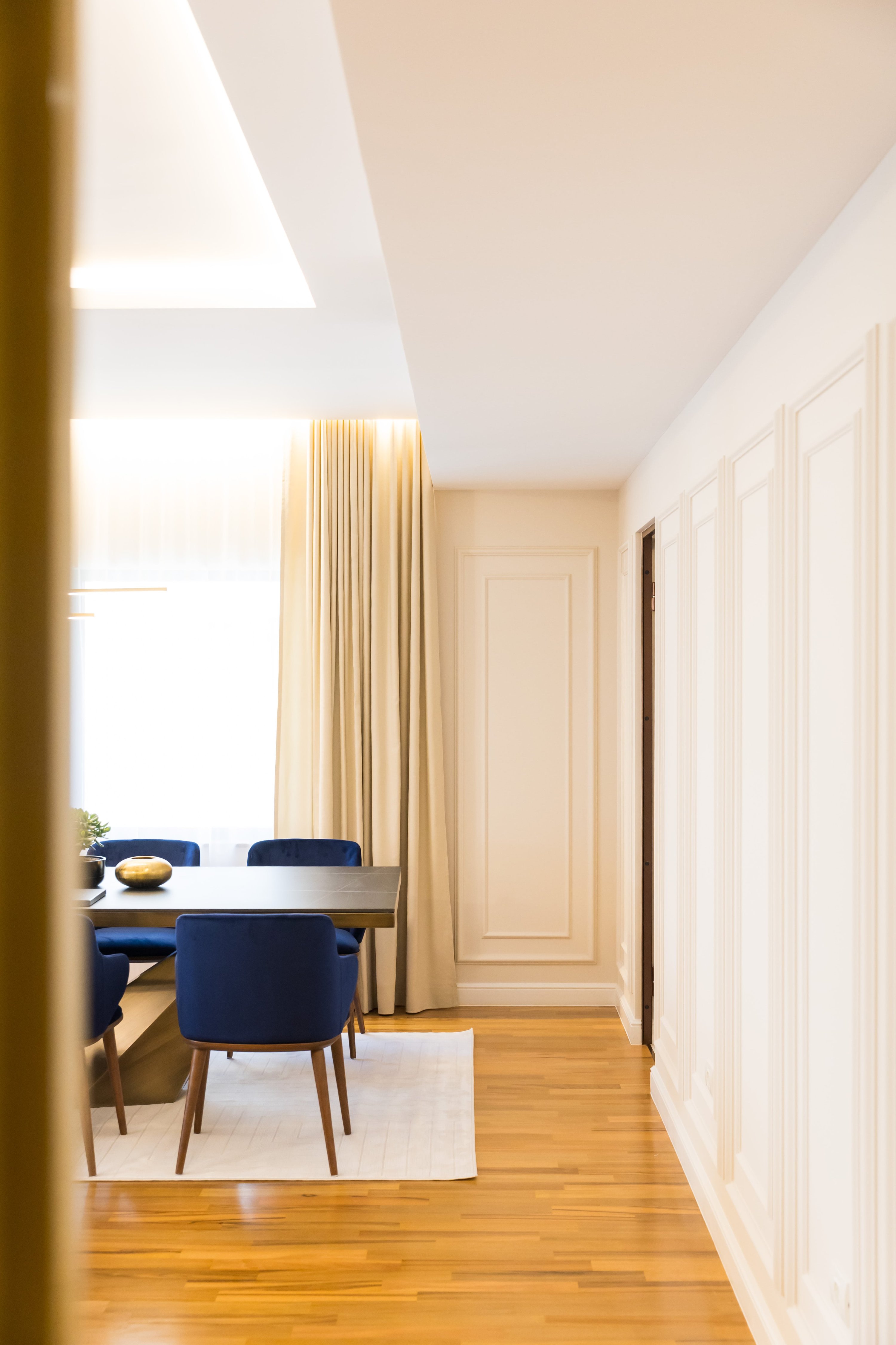 „În acest proiect, am urmărit să creăm un echilibru perfect între funcționalitate și estetică, unde fiecare element de design nu doar că îmbogățește spațiul, ci și îmbunătățește experiența zilnică a locuirii. Prin paleta de culori liniștitoare și integrarea inteligentă a materialelor de calitate, fiecare cameră devine o poveste de rafinament și confort modern.”