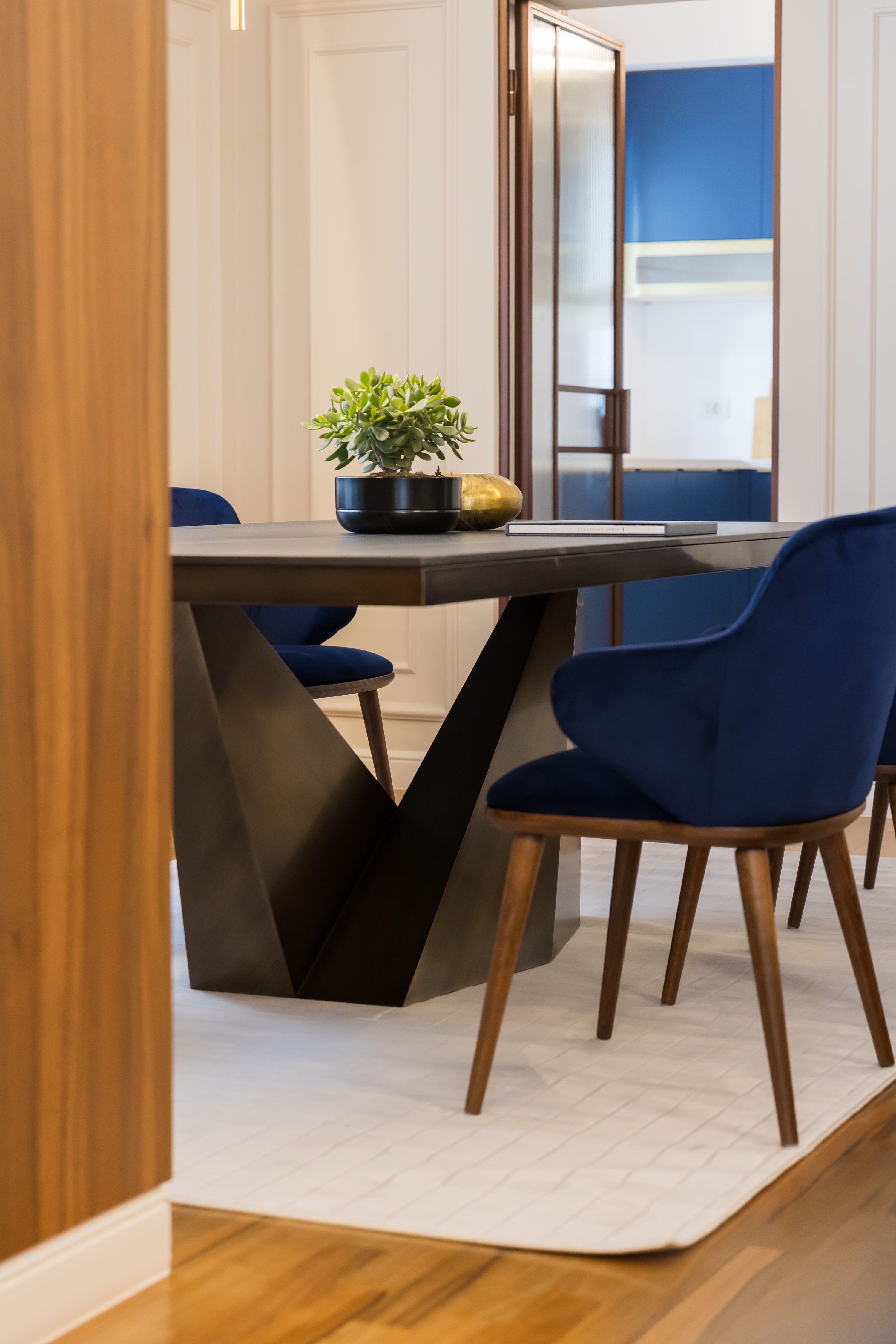 „Am dorit ca această casă să reflecte un echilibru perfect între naturalețe și rafinament, unde fiecare element, de la nuanțele calde de lemn la detaliile de alamă, contribuie la crearea unui spațiu care să invite la relaxare și conectarea cu cei dragi."